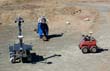 NASA demonstrated on October 3, 2005, two autonomous "intelligent" robots that they hope will one day work side-by-side with humans in harsh extraterrestrial environments. The robots, named “K-9” and “Gromit”, are able to perform certain tasks without detailed human instructions. This would would allow them to prepare craft landing sites, build structures and mine for resources, and generally behave as astronaut butlers. The demonstration was at the NASA Ames Research Center in Mountain View, California. View Story.