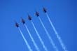 The U.S. Navy's Blue Angels above San Francisco on October 8, 2006. The event was part of the annual Fleet Week celebration. The mission of the Blue Angels is to enhance recruiting within the US Navy and represent it in the United States and other countries. They use F/A18 Hornet aircrafts.