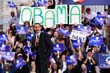 More than 10,000 people gave a rock-star welcome to US Democratic presidential candidate Barack Obama in Oakland, CA, on March 17, 2007, on his first campaign stop in California. Obama is campaigning and fundraising throughout the country for the 2008 US Presidential elections