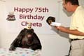 Cheeta, famed for his appearances in the 1930's and 1940's Tarzan movies starring Johnny Weissmuller and Maureen O'Sullivan, turned 75 years old and remains the world's oldest living primate. He lives happily at the C.H.E.E.T.A Primate Sanctuary in Palm Springs, California, a home for primates who have retired from the movie industry and the show business.